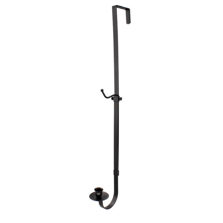 Elevate your front door decor with our Adjustable Wreath Hanger With Candle Holder! Crafted from durable metal and painted black, this hanger is adjustable to fit most wreath sizes. This wreath hanger will fit securely but loosely over your door and showcase your favorite wreath - measuring max 36in long and 25in from holder to bottom.