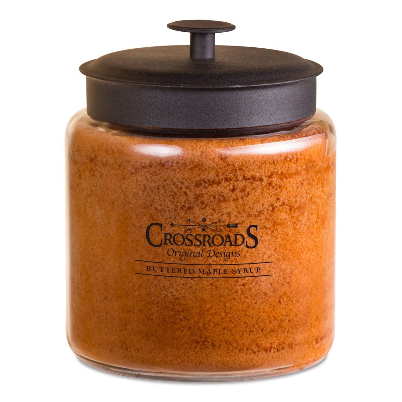 A sweet blend of warm butter and sugary maple syrup. 96 oz jar candle with four wicks for even burning. Comes with the metal scent lock lid shown. Burns approximately 300 hours. Made in the USA by Crossroads Candle Company.