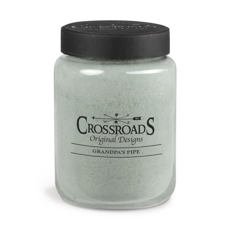 Rich tobacco, tonka, clove cedar and musk. 26 oz jar candle with 2 wicks for even burning. Burns approximately 120-140 hours. Made in USA by Crossroads Candle Company.