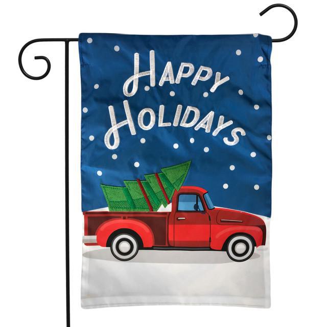 Add a colorful, welcoming touch of the season to your home and garden with a premium decorative flag. Text reads correctly on both sides. The original artwork printed and appliqued on polyester material designed for outdoor display provides unique designs that are as durable as they are beautiful! Flag stand sold separately. Measures 12.5” x 18”.