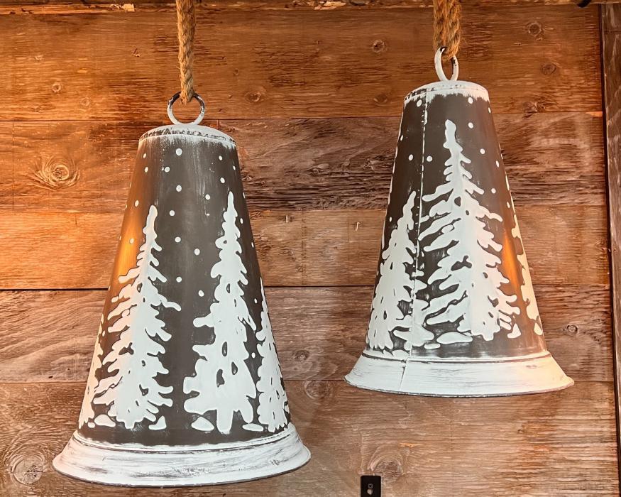 This holiday season go with the natural outdoors look. This Large Woodland Bell is the perfect bell to accomplish that look. Pair it with the Small Woodland Bell, sold separately to make a statement. Measures approximately 18"T x 11.5"R at bottom. Come with jute, measuring 12"L for hanging and a clapper inside to give that ringing sound.