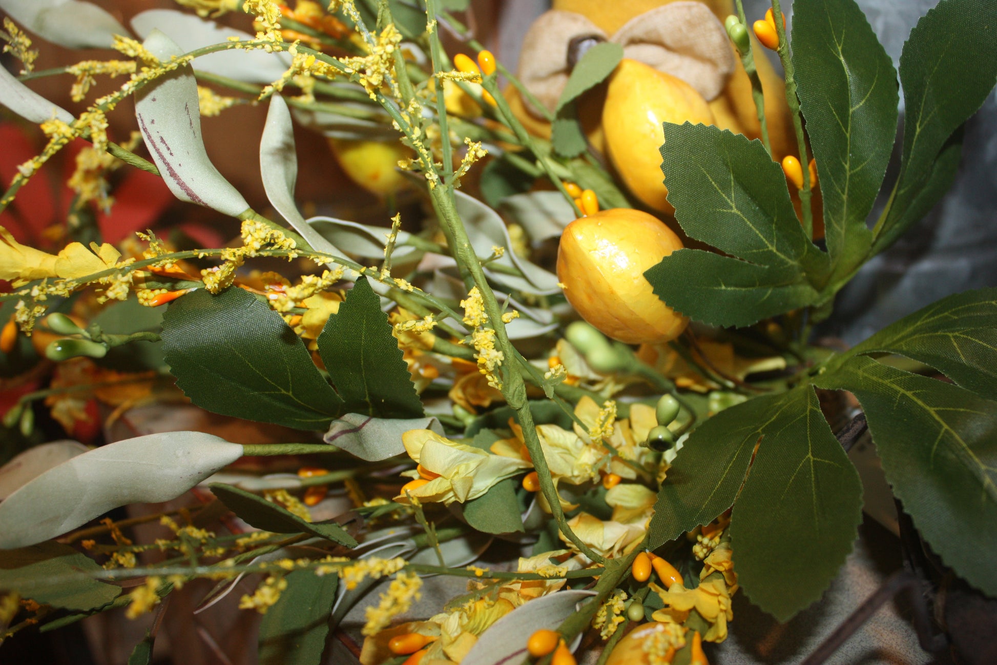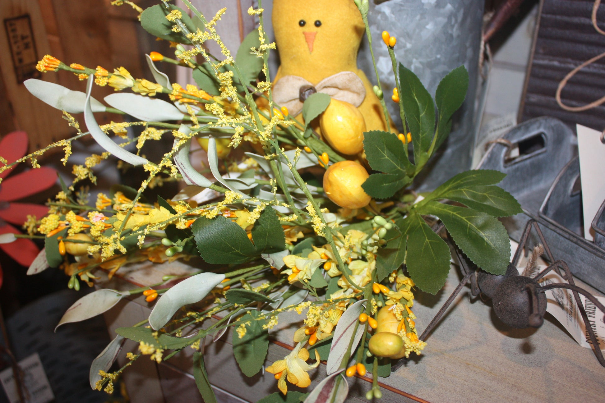 This vibrant lemon pick contains lemons, yellow pip berries, hints of yellow flowers and beautiful greens. Add a couple of these to your vases for a lovely centerpiece or tuck them around your home decor on shelves to brighten your room and welcome spring and summer. Overall length including stem is approximately 18" L