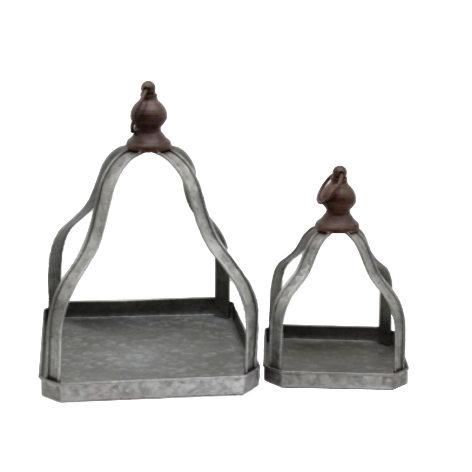 Small pyramid metal open lantern looks great with a holiday wreath and a battery operated candle in the center. Comes with a ring on top for ease of hanging. Approximate size 6" x 6" x 9". Large pyramid lantern and all other accessories sold separately.