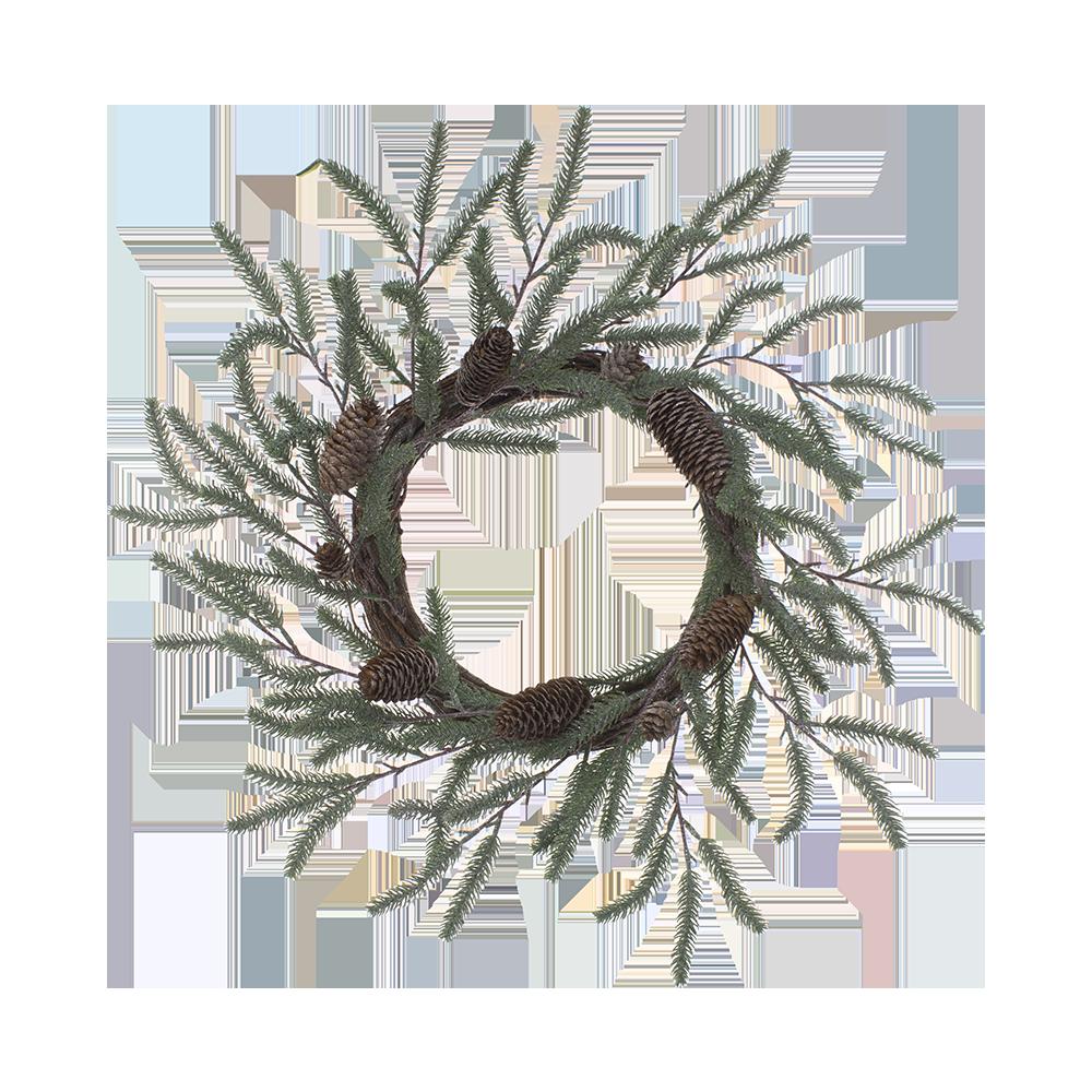 This lovely thin Spruce and Pinecone wreath adds a subtle touch when paired with your holdiay candle. Measures approximately 22" round.